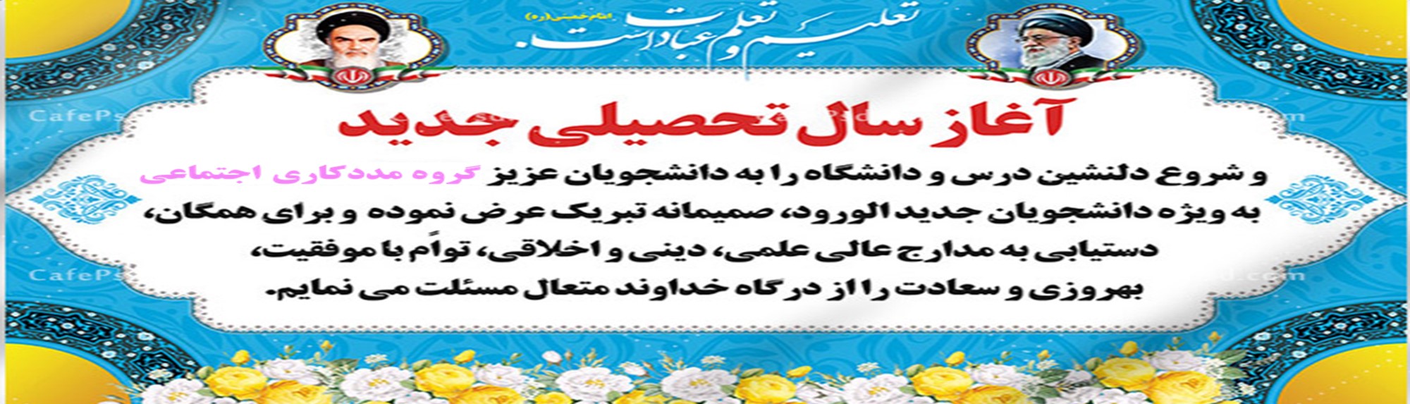 شما عزیزان میتوانید با همدلی، نشاط و تلاش علمی و مشارکت در فعالیت های داوطلبانه بویژه در حوزه سلامت اجتماعی، مرزهای دانش و فرهنگ را در نوردید و ایرانی آبادتر، منسجم تر و پرافتخارتر را در سایه پرچم مقدس جمهوری اسلامی ایران، به جهانیان معرفی کنید. ان شاء الله